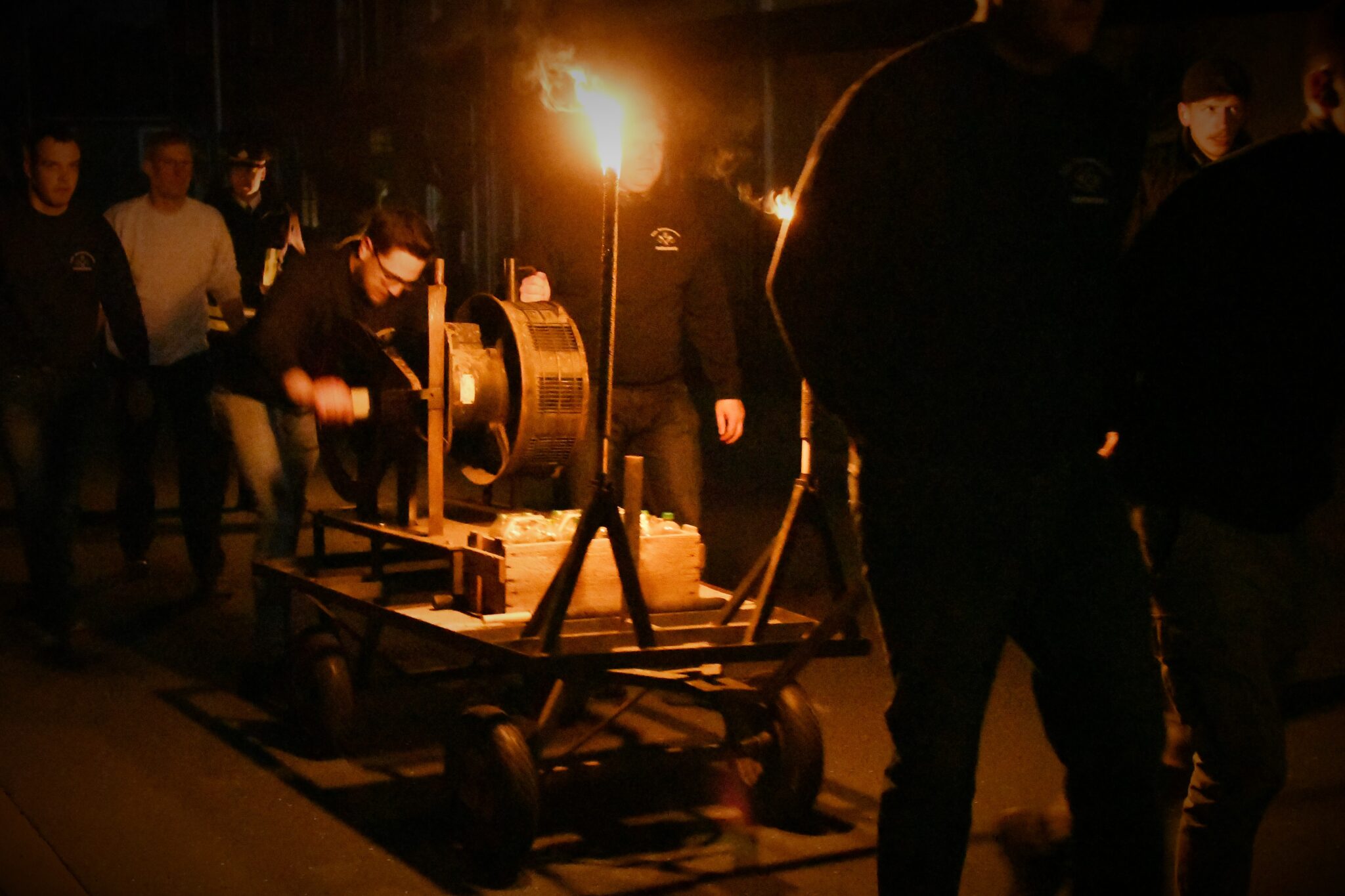 Was das bedeutet: Die Lärminstrumente dürfen ausschließlich mit Muskelkraft bedient werden – elektrische oder mit Druckluft betriebene Geräte sind verboten. Viele der metallenen Instrumente sind mittlerweile auf Handwagen gebaut. Doch einige Männer tragen sie auch noch klassisch auf dem Rücken durch die Straßen: Sie schulterten sich Pfosten mit großen Sägeblättern oder zu zweit schwere leere Gasflaschen auf den Rücken, die die Hintermänner dann mit Hämmern bearbeiteten. Auch die Männer, die die schweren Holzrasseln über ihren Köpfen schwingen, haben es nicht viel leichter. Jeweils mehrere Männer führen zusammen ein Instrument, wechseln sich dabei ab. Trotz der kurzen Pausen, die dadurch entstehen, sei es für jeden enorm anstrengend: „Als ich 60 wurde, habe ich auch gemerkt, dass ich es nicht mehr kann. Ich musste mit dem Rasseln aufhören“, scherzt Glade.